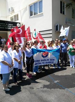 Onlar sizi yanıltırlar. Onlar makam odalarında başka, dışarıda çalışanlara başka konuşuyorlar. Ama bak biz sana buradan çalışanlarla beraber Türk Sağlık-Sen olarak sesleniyoruz: Bu yol, yol değil; bundan vazgeçin.