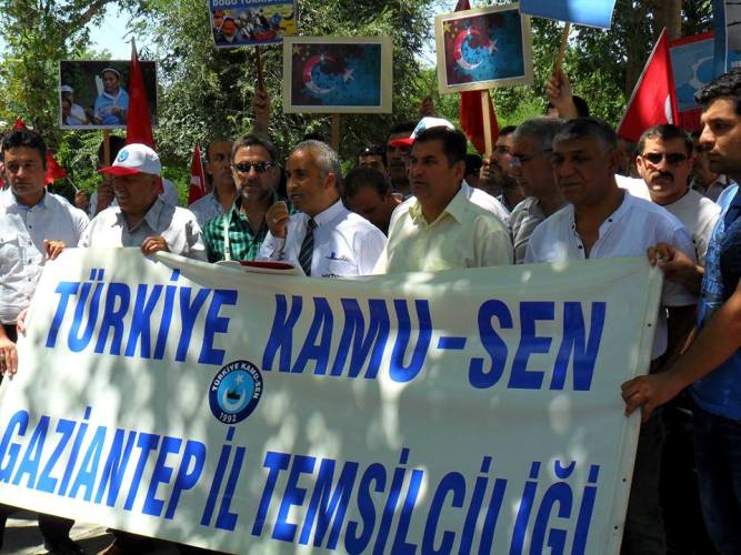 Türkiye Kamu-Sen Gaziantep İl Temsilcisi Baler FİDAN yaptığı basın açıklaması atılan sloganlarla son buldu.