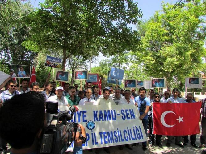 Türkiye Kamu-Sen Gaziantep İl Temsilciliği olarak; Kızıl Çin’in Doğu Türkistan’ da yaşayan Uygur Türklerine yaptığı katliamı ve zulme Şehitler Abidesi önünde yaptığımız kitlesel basın açıklamasıyla protesto ettik.