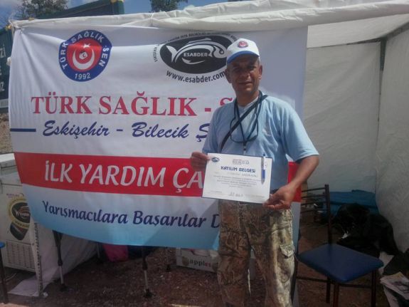 Eskişehir Büyükşehir Belediyesinin sponsorluğunda bir çok firmanında destek olduğu yarışmaya Türk Sağlık-Sen olarak Olası yaralanma ve rahatsızlanmalarda müdahale edebilmek adına İlk yardım çadırı kurduk.Devlet hast. İşyeri temsilcimiz Sn. Şeyda Şıkmert hanımefendi, Tıp Fak. işyeri Temsilcimiz Sağlık memuru TC Oğuz Demir beyin destekleri ile 24 saat nöbet tutuldu.Ufak bir bilek burkulması dışında bir olay yaşanmamasıda sevindirici idi. Amatör olta balıkçılığına gönül vermiş biri olarak, düzenlenen yarışmaya katılmasam olmazdı.Her ne kadar deceye giremesemde yakaladığım ve suya iade ettiğim 48,5 cm sazan beni sevindirmeye yetti.