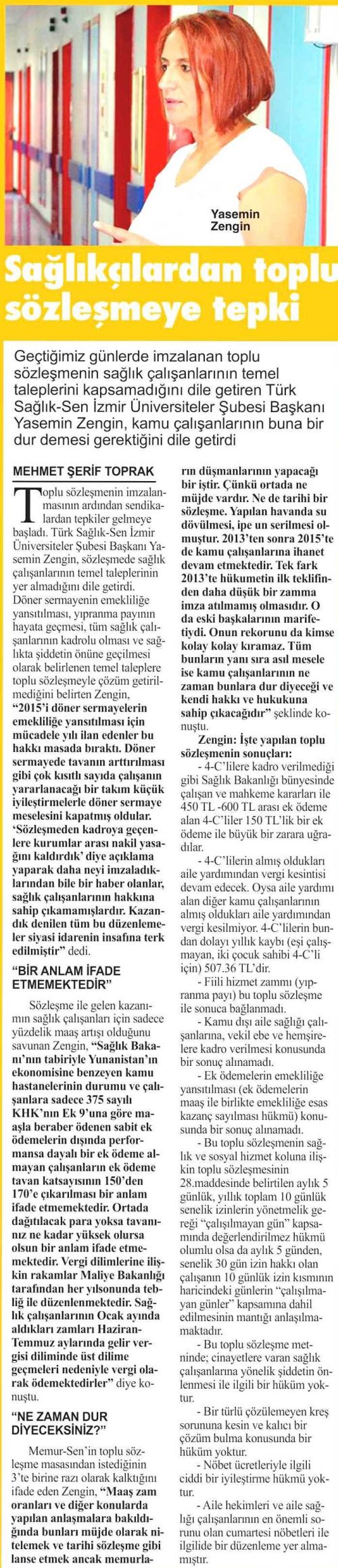 Bu dört temel talep sağlık çalışanlarının çözülmesini istediği temel konulardı. Fakat imzalanan toplu sözleşme metninde bu taleplerin hiçbiri ile ilgili bir düzenleme yer almadı. 2015’i döner sermayelerin emekliliğe yansıtılması için mücadele yılı ilan edenler bu hakkı masada bıraktı. Döner sermayede tavanın arttırılması gibi çok kısıtlı sayıda çalışanın yararlanacağı bir takım küçük iyileştirmelerle döner sermaye meselesini kapatmış oldular.