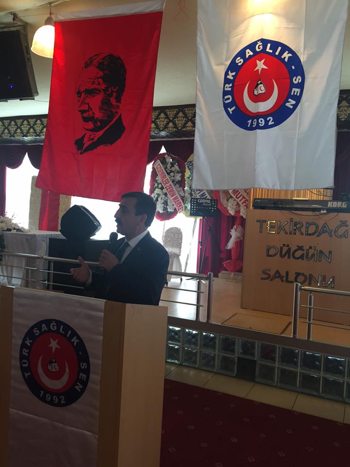 Açılışını Tekirdağ şube Başkanımız Yalçın Gür’ün yaptığı toplantıda konuşmasına şehitlerimizi anarak başlayan Genel Başkanımız Önder Kahveci “Gün geçmiyor ki, şehit haberi ile uyanmayalım. Kahramanlarımız can veriyor. Vatanımızın bütünlüğü, milletimizin birliği ve devletimizin bağımsızlığı için kahramanlarımız can veriyor. Hepsini rahmet ve minnetle anıyorum, ülkemiz böylesine zorlu bir dönemden geçerken bazıları hala makam ve mevki peşinde koşuyor. Senin devletin olmazsa sen, hangi makamın müdürü olacaksın.' dedi.