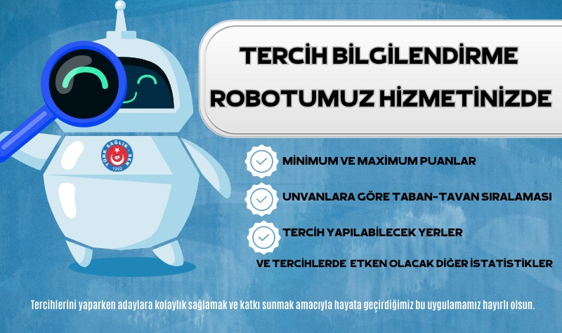 Tercihlerinizi yaparken siz adaylara kolaylık sağlamak ve katkı sunmak amacıyla hayata geçirdiğimiz tercih robotumuza buradan ulaşabilirsiniz