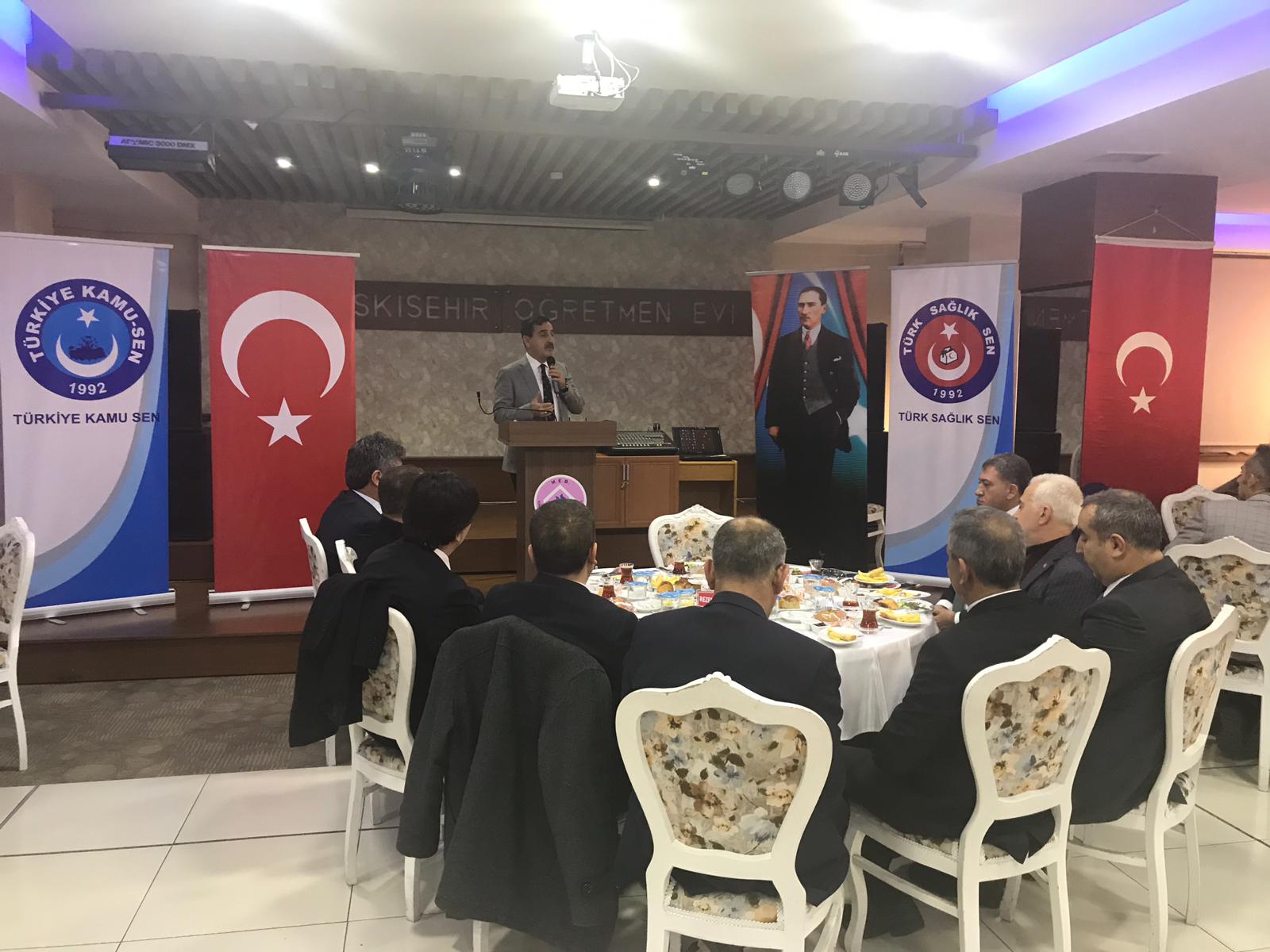 Konuşmasında ülkenin yaşamış olduğu ekonomik sıkıntılardan en çok kamu çalışanlarının etkilendiğini belirten Genel Başkanımız Önder Kahveci , “Ülkemizin yaşamış olduğu ekonomik sıkıntılar en çok kamu çalışanlarını etkilemekte. Enflasyon hiç beklenmediği kadar yüksek çıktı. Kamu çalışanları 2018 yılı içinde yüzde 7,5 zam ve birinci 6 aylık enflasyon farkını aldılar. Bu rakamları değerlendirdiğimizde kamu çalışanlarının ve emeklilerin ciddi reel bir gelir kayıpları olduğu görülüyor. Bizim harcamalarımız artmış, bunun karşılığında maaşlarda bunun yarısından az bir artış olmuş. Dolayısıyla çalışanlara ek bir zam verilmesi kaçınılmazdır. Bu ek zam hem çalışan hem de emeklilerimizin bütçelerini bir miktar rahatlatacak aynı zaman çarşının, pazarın canlanmasına vesile olacak” dedi.