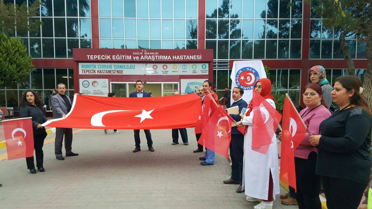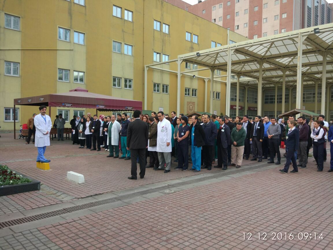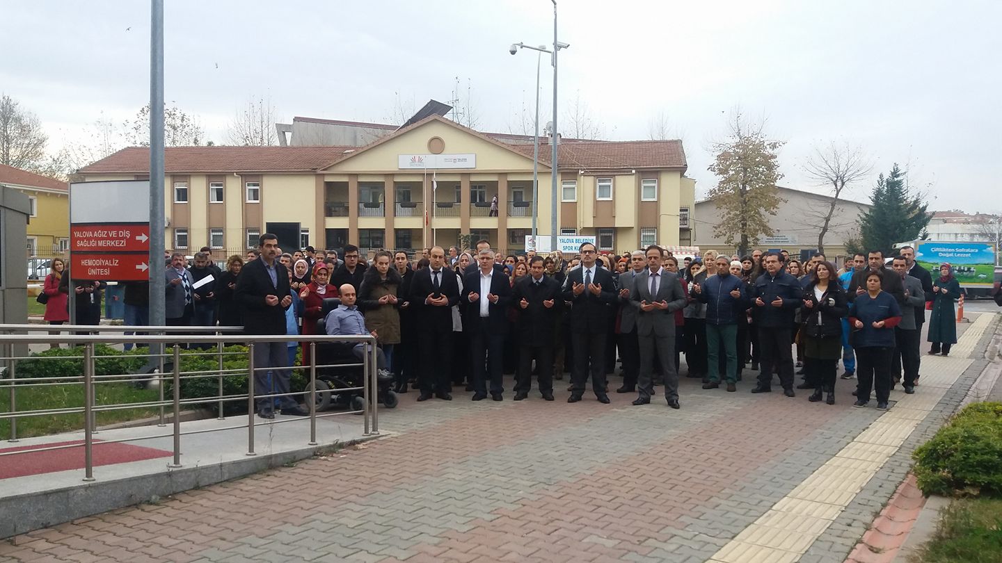 Sağlık ve sosyal hizmet çalışanlarının katıldığı anma törenlerinde şehitlerimiz için saygı duruşunda bulunularak İstiklal Marşı okundu ve dualar edildi.