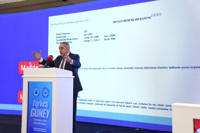 Türkeş Güney, sendikal mücadelenin geçmişinden kamu personel rejimine, memurların yaşadığı ekonomik sorunlardan sendikal yapıya kadar birçok başlıkta önemli değerlendirmelerde bulundu. Güney, memurlara sendika kurma ve sendikaya üye olma hakkının Türkiye Kamu-Sen’in onurlu mücadelesi sonucunda kazanıldığını belirterek, 4688 sayılı Kamu Görevlileri Sendikaları Kanunu’nun MHP’nin koalisyon ortağı olduğu 57. Hükümet döneminde yasalaştığını hatırlattı. Kamu personel rejiminde kapsamlı reforma ihtiyaç olduğunu vurgulayan Güney, liyakat ve kariyer ilkelerinin güçlendirilmesi, istisnai kadroların kaldırılması, görevde yükselme ve unvan değişikliği sisteminin objektif esaslara bağlanması gerektiğini ifade etti.