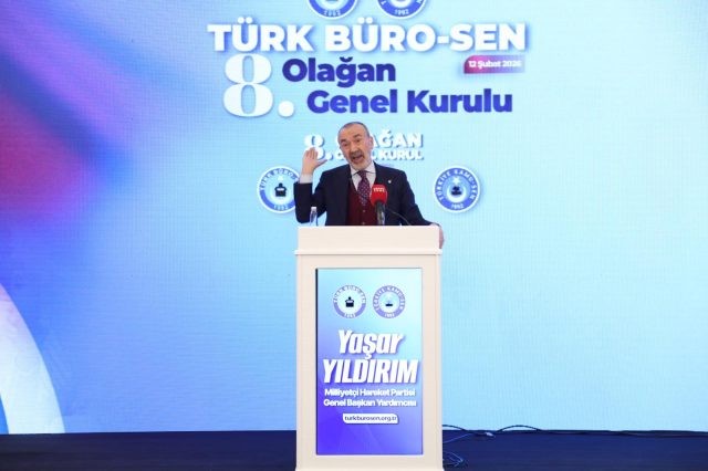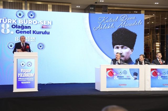Türk Büro-Sen 8. Olağan Genel Kurulu’nun hayırlı olmasını dileyerek katılımcıları selamlayan MHP Genel Başkan Yardımcısı ve Ankara Milletvekili Yaşar Yıldırım, yaptığı konuşmada hem sendikal sürece hem de güncel siyasi tartışmalara ilişkin değerlendirmelerde bulundu.
