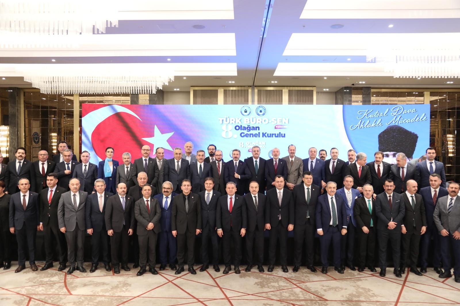 Türk Büro-Sen’in 8. Olağan Genel Kuruluna, MHP Genel Başkan Yardımcısı ve Ankara Milletvekili Yaşar Yıldırım, Çalışma ve Sosyal Güvenlik Bakan Yardımcıları Ahmet Aydın ve Faruk Özçelik, Türkiye Kamu-Sen Genel Başkanımız Önder Kahveci, sendikalarımızın Genel Başkanları, MHP MYK Üyeleri, SGK Başkanı Yunus Elitaş, Çalışma Bakanlığı bünyesinde görev yapan Genel Müdürler ve bürokratlar, Genel Başkan Yardımcılarımız, Ülkü Ocakları Ankara İl Başkanı Ömer Şanlı, Türk Hukuk Enstitüsü Genel Başkanı Cemil Yavuz Aksu, TÜRKAV Genel Başkanı Ebubekir Korkmaz, Türk Mühendisler Derneği Genel Başkanı Yaşar Yekebağcı, sivil toplum kuruluşlarının başkan ve yöneticileri, Ülkü-Tek Genel Başkanı, Kadın Komisyonu Başkanımız Ece Elvan Çırağ, Şube Başkanlarımız ve çok sayıda davetli katıldı.
