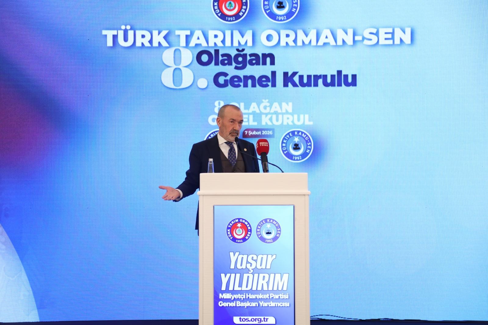 Türk Tarım Orman-Sen 8. Olağan Genel Kurulu’nun hayırlı olmasını dileyerek katılımcıları selamlayan MHP Genel Başkan Yardımcısı ve Ankara Milletvekili Yaşar Yıldırım,