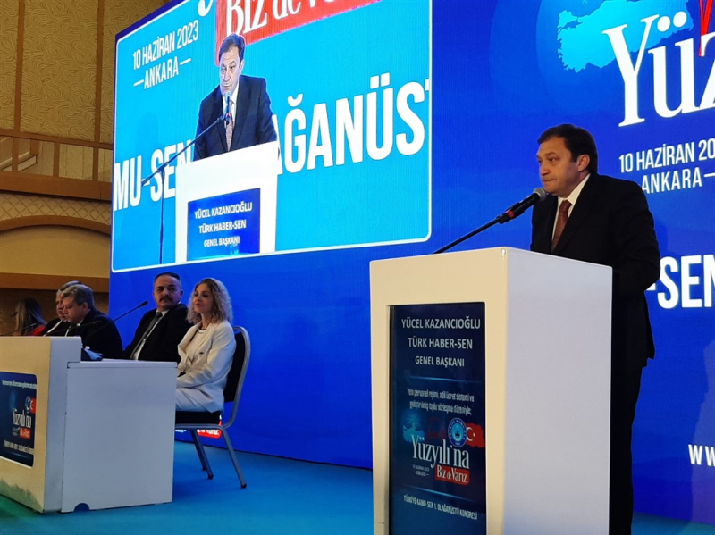 Türk Haber-Sen Genel Başkanı Yücel Kazancıoğlu konuşmasında, “Türkiye Kamu-Sen ve sendikalarımız, gücünü Türk memurundan alan, hak ve adalet yolunun cesur cengâverleridir. Memurlarımızın grevli, toplu sözleşmeli, siyasete katılma hakkını içeren uluslararası standartlara uygun sendikal ve demokratik haklara kavuşması için 24 Haziran 1992’den beri canla başla mücadele veriyoruz. İnşallah 2 hafta sonra davamızın 31. yılını tamamlayacağız. Bu süre zarfında ne devletimizin ne milletimizin ne de memurlarımızın aleyhine olacak hiçbir eylem ve söylem içinde bulunmamış olmanın, kurulduğumuz günkü ilkelerimizden en ufak bir taviz vermeden erdemli bir mücadele yürütmenin gururunu yaşıyoruz. Devletimizin bağımsızlığı, milletimizin mutluluk ve refahı, kamu çalışanlarımızın mali, sosyal ve özlük hakları için belirlediğimiz hedeflere kararlılıkla yürüyoruz.