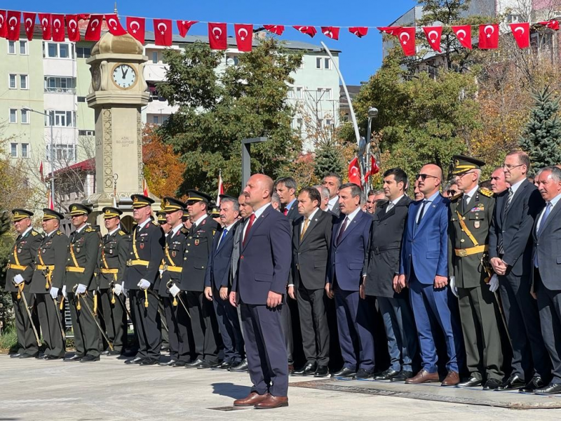 Ağrı ziyaretinde Genel Başkanımız Önder Kahveci ve yönetim kurulu üyelerimiz Cumhuriyet Bayramı dolayısıyla Ağrı Cumhuriyet Meydanı’nda Atatürk büstüne çelenk koydu.