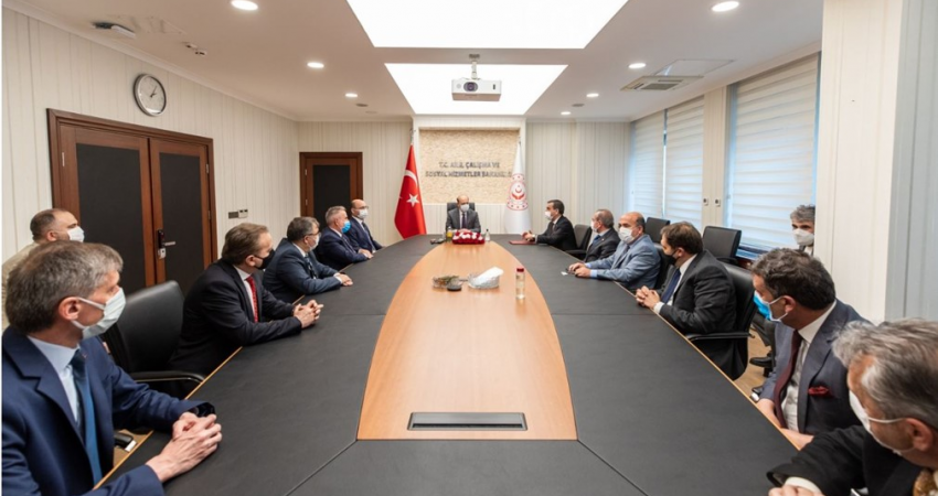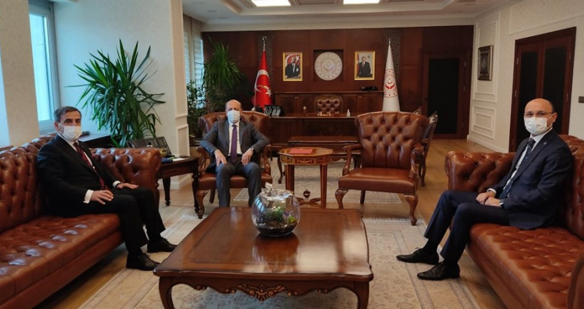 Çalışma ve Sosyal Güvenlik Bakanı Prof. Dr. Vedat Bilgin ise, ziyaretten memnuniyet duyduğunu belirterek, “Nazik ziyaretinizden dolayı teşekkür ediyorum. Bakanlığımız milyonlarca insanı yakından ilgilendiren son derece önemli bir Bakanlıktır. Sıkıntılarının çözümü için bekleyen kesimleri memnun etmek için çaba sarf edeceğimizden kimsenin şüphesi olmamalıdır" dedi.