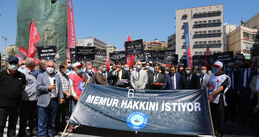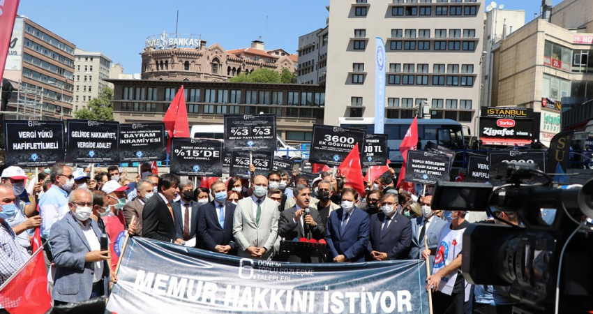 Hükümetin memurlara yönelik zam teklifini revize etmesi için Başkent Ankara ve tüm illerimizde eş zamanlı olarak basın açıklaması yaptık.